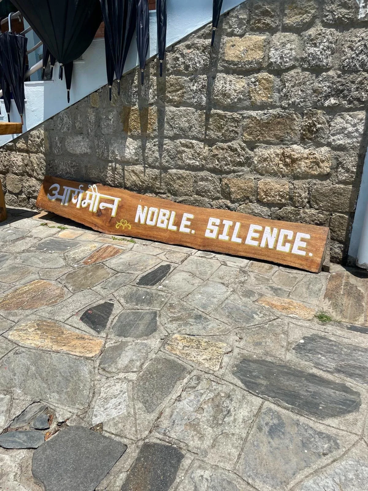 Outside the main meditation hall at Dhamma Shringa, Kathmandu Valley 2023. Noble Silence - silence of body, speech and mind to be adhered to by course participants.